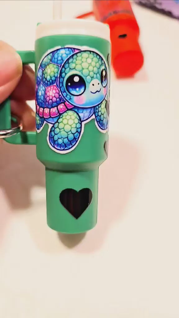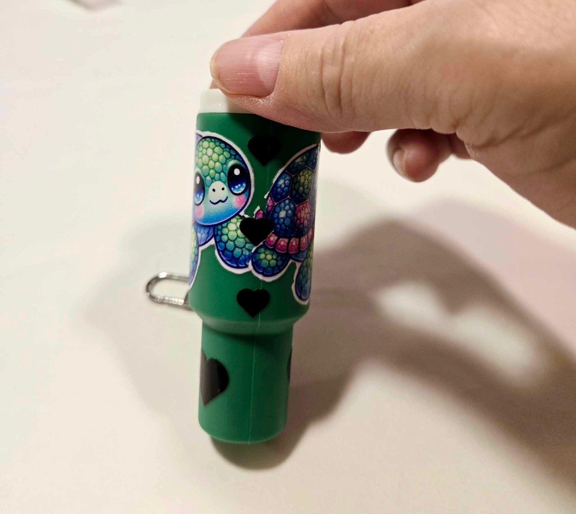 Dive into serenity with our Turtle Tranquility ChapStick Holder! This adorable holder features a vibrant, cute turtle, its shell a mesmerizing blend of blues and greens that evoke the peaceful depths of the ocean. The rich, soothing green of the holder complements the turtle’s calming palette, making it a delightful accessory for anyone who loves sea creatures or needs a reminder to slow down and enjoy life’s simple pleasures. Equipped with a durable UV DTF decal and a handy tube of ChapStick, this holder is not only practical but also a perfect token of tranquility to carry with you every day.