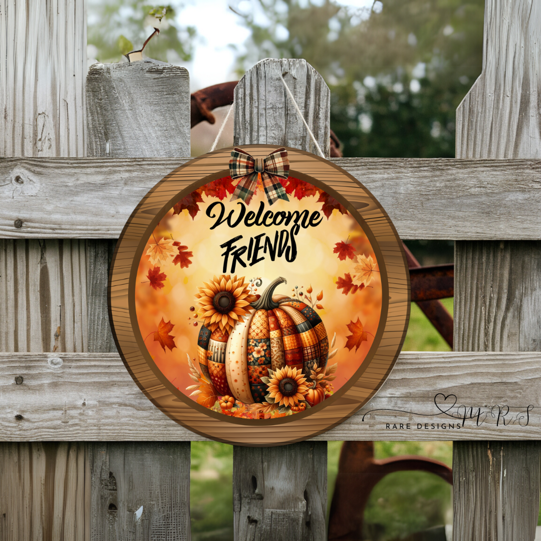 Welcome Friends Autumn Pumpkin Door Sign Collection
