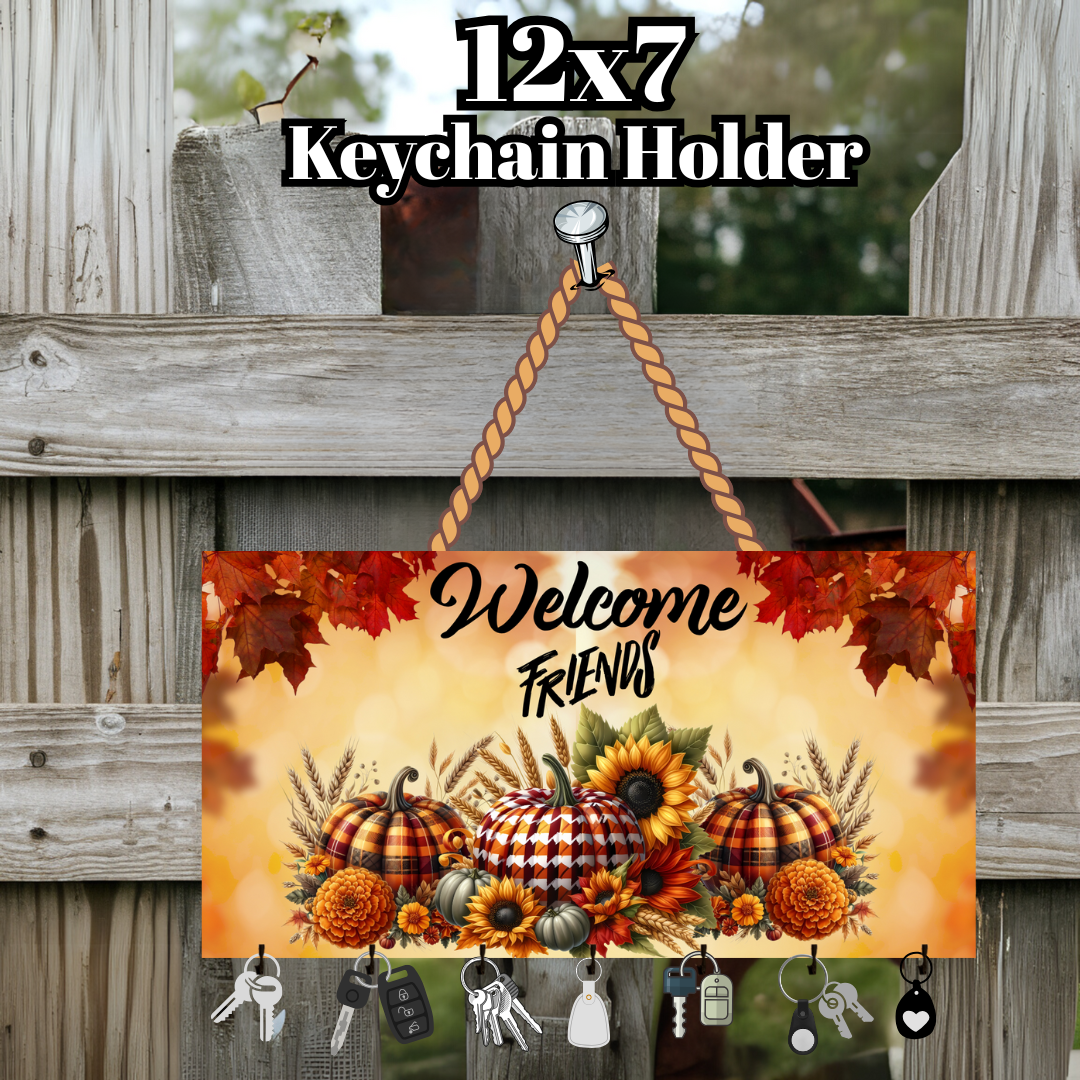 Welcome Friends Fall Pumpkin Keychain Holder – 12x7 Wall Organizer