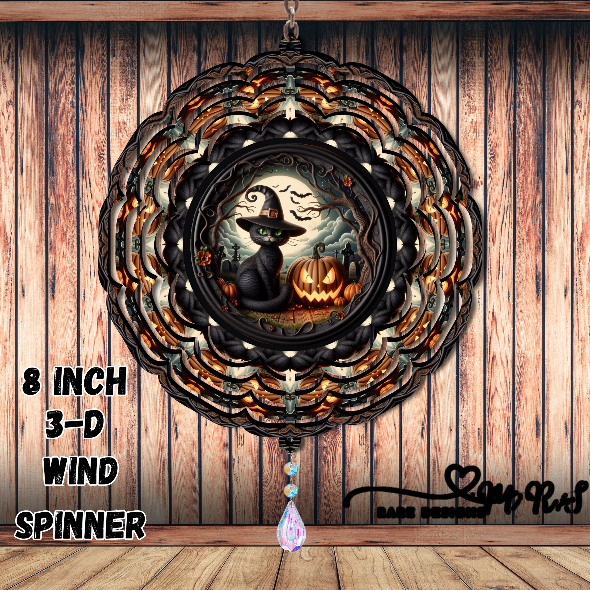 Bring a touch of spooky charm and mesmerizing movement to your home or garden with our Wicked Whiskers Halloween Wind Spinner. Measuring 8 inches, this 3D spinner features a black cat in a witch’s hat alongside a glowing jack-o’-lantern, set against a haunting autumn night sky. Crafted with layered details, it creates a dazzling optical illusion as it spins in the breeze. Perfect for porches, patios, gardens, or even indoor Halloween décor, this wind spinner adds just the right amount of eerie enchantment to your seasonal decorations. Whether you’re a cat lover, Halloween enthusiast, or collector of unique décor, this piece is sure to be a conversation starter.